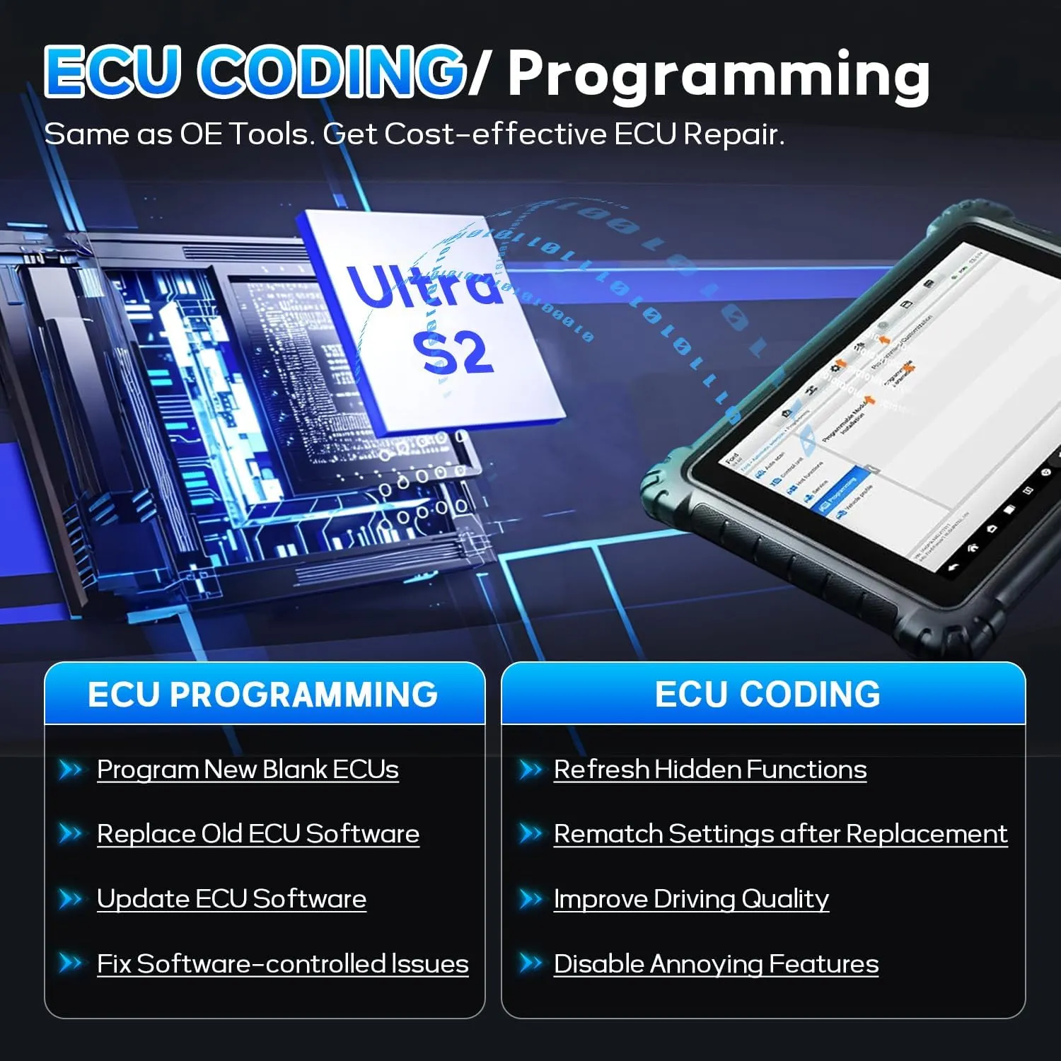 The MaxiSys Ultra S2 ensures your business stays ahead in the rapidly evolving automotive industry. With extensive vehicle coverage, high-speed performance, and ultra-modern software updates, it’s engineered to support current and future diagnostic technologies. Don’t settle for less when you can have a tablet tailored to withstand the challenges of tomorrow.