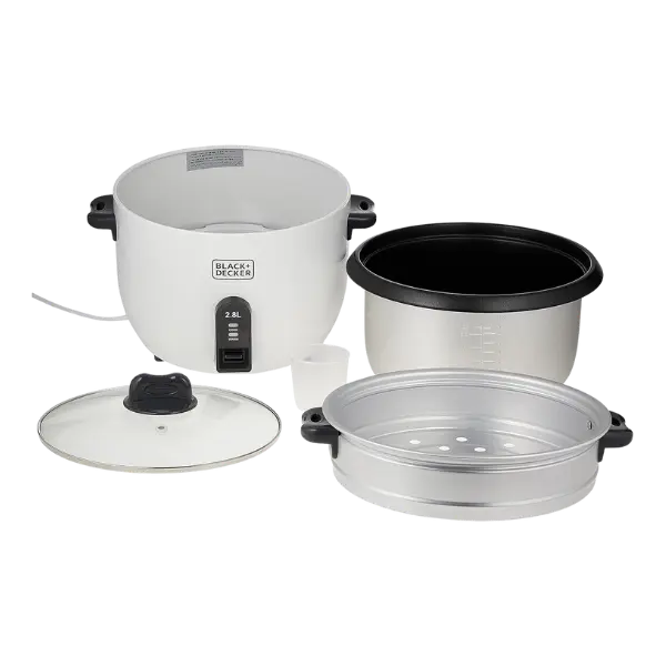 The BLACK DECKER RC2850-B5 Rice Cooker is your ultimate kitchen companion, designed to simplify your cooking experience while delivering perfect results every time. With a large capacity of 2.8L and a powerful 1100W heating element, it ensures rapid and efficient cooking, keeping convenience and precision at the forefront. Its elegant white, black, and silver finish guarantees style blending seamlessly with any kitchen décor.