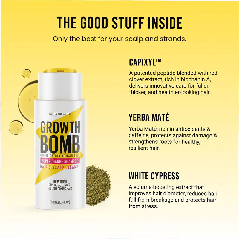 Say goodbye to discomfort and hello to a refreshed feel. Growth Bomb Dandruff Shampoo cleanses deeply while calming scalp irritation, delivering relief and balance during every wash. The gentle formula rejuvenates your hair without stripping away natural oils, offering a smooth and nourished texture that lasts. Experience the confidence that comes with cleaner, stronger, and healthier-looking hair all day long.