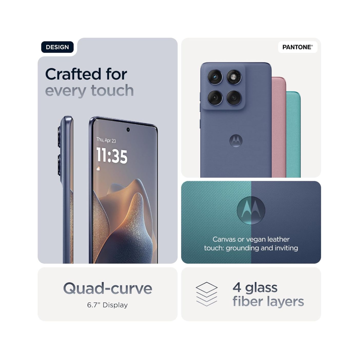 Immerse yourself in the awe-inspiring visuals of the Motorola Edge 60 Fusion. Featuring a sleek, edge-to-edge display, your favorite videos, games, and images come to life in vibrant detail. The Pantone Slipstream (Grey) colorway adds a touch of luxury, making a statement anytime you have it in hand. Plus, its ergonomic design ensures it feels just as good as it looks.