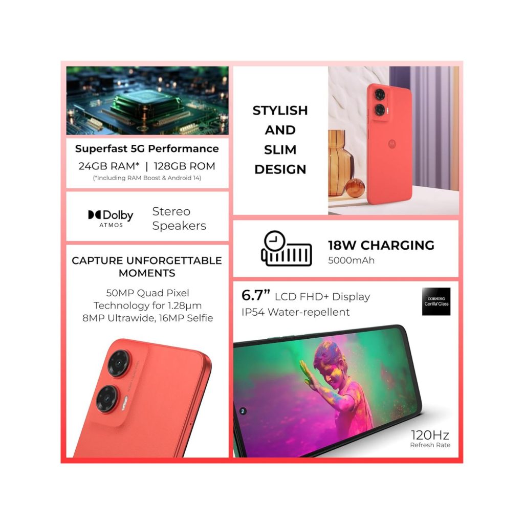 Turn heads with the sleek and vibrant Guava Red design that perfectly complements the phone’s high-performance features. Crafted with precision, the Motorola G35 offers both durability and sophistication while sitting comfortably in your hand. The refined aesthetics make it an ideal choice for users seeking style without compromising functionality.