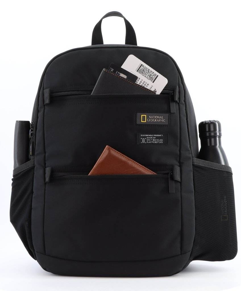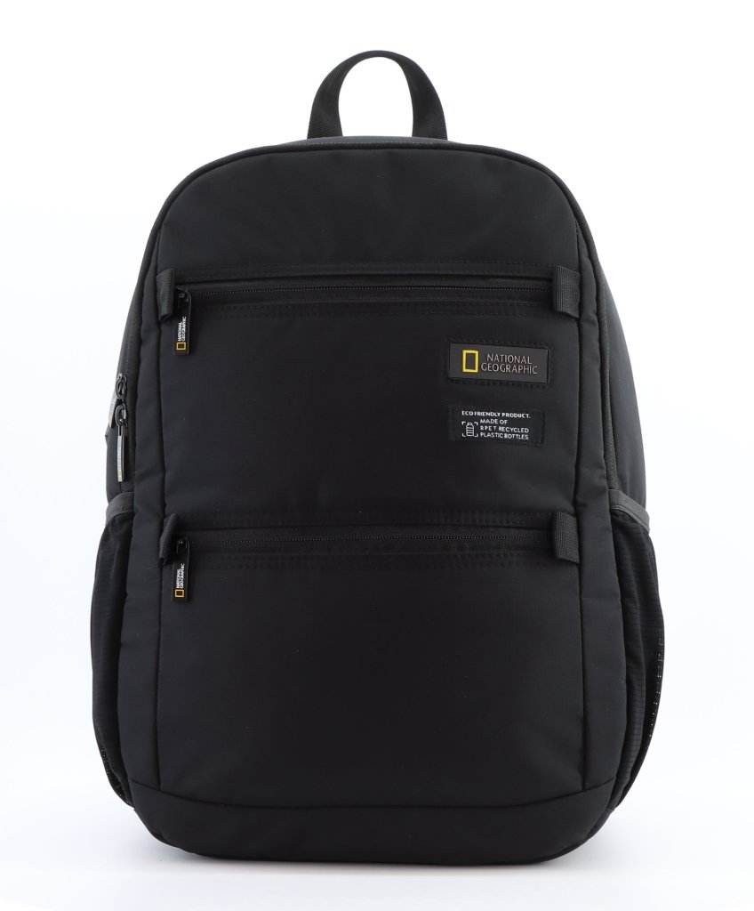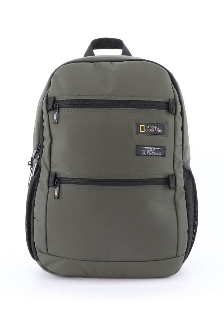 National Geographic Mutation Backpack 23L – made from RPET polyester with laptop and tablet pockets, front and side zip pockets, spacious main compartment, and daily-use organization. Perfect for school, office, travel, and everyday use.