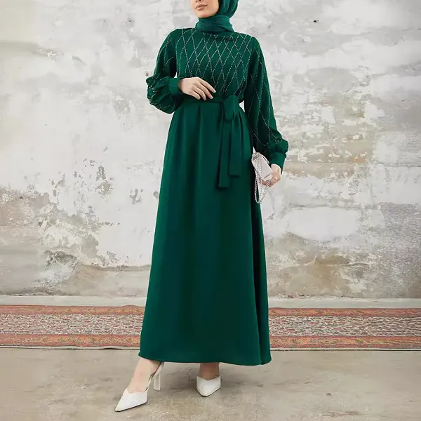 Discover timeless sophistication with our Turkish-Style Long Abaya, crafted for Muslim women seeking an elegant blend of tradition and modernity. This abaya is truly a masterpiece, featuring intricate stone embroidery alongside dazzling hot diamond accents. Whether you’re attending a formal gathering, a religious event, or simply elevating your everyday wardrobe, this long abaya offers you unparalleled grace and charm.
